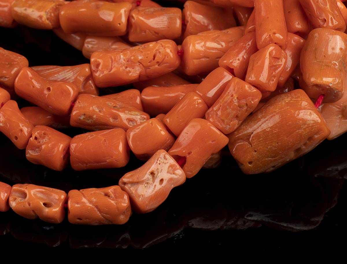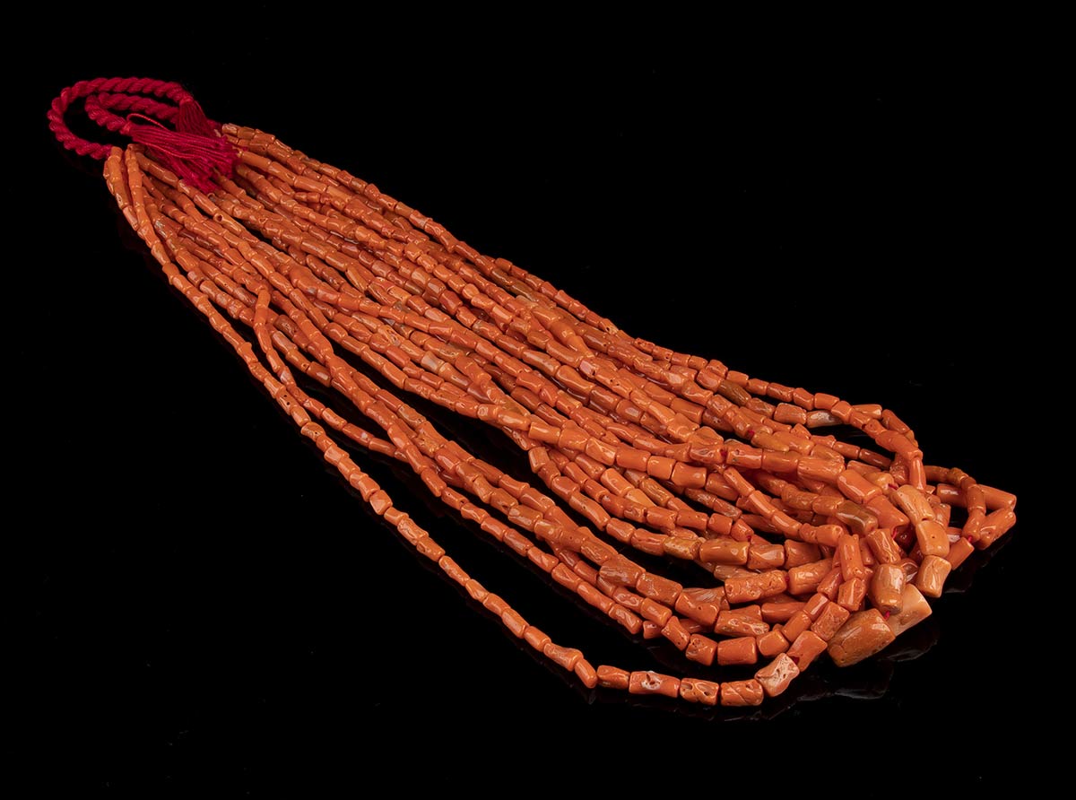11 fili di cilindretti grezzi di corallo Mediterraneo in gradazione