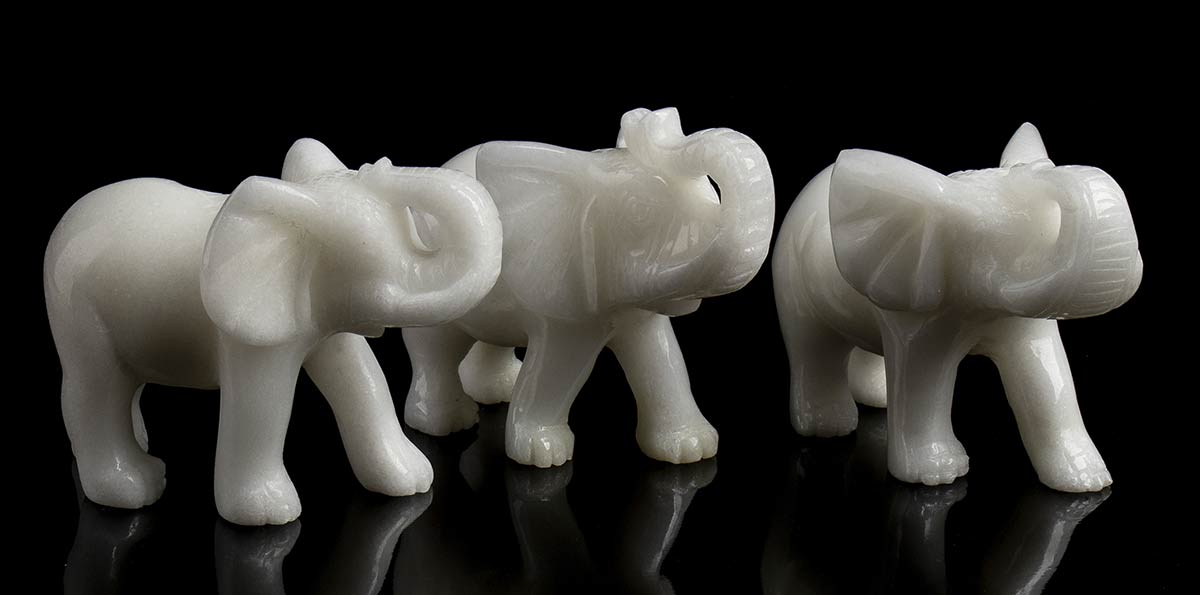raffiguranti elefanti. Dimensioni 8 x 5,5 x 4,5 cm, peso totale 450 gr circa. Stato di conservazione: ***** eccellente.
