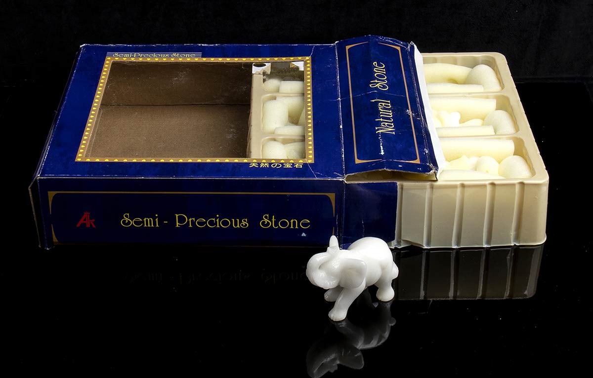 raffiguranti elefanti. Dimensioni 8 x 5,5 x 4,5 cm, peso complessivo 1000 gr circa. Stato di conservazione: ***** eccellente.