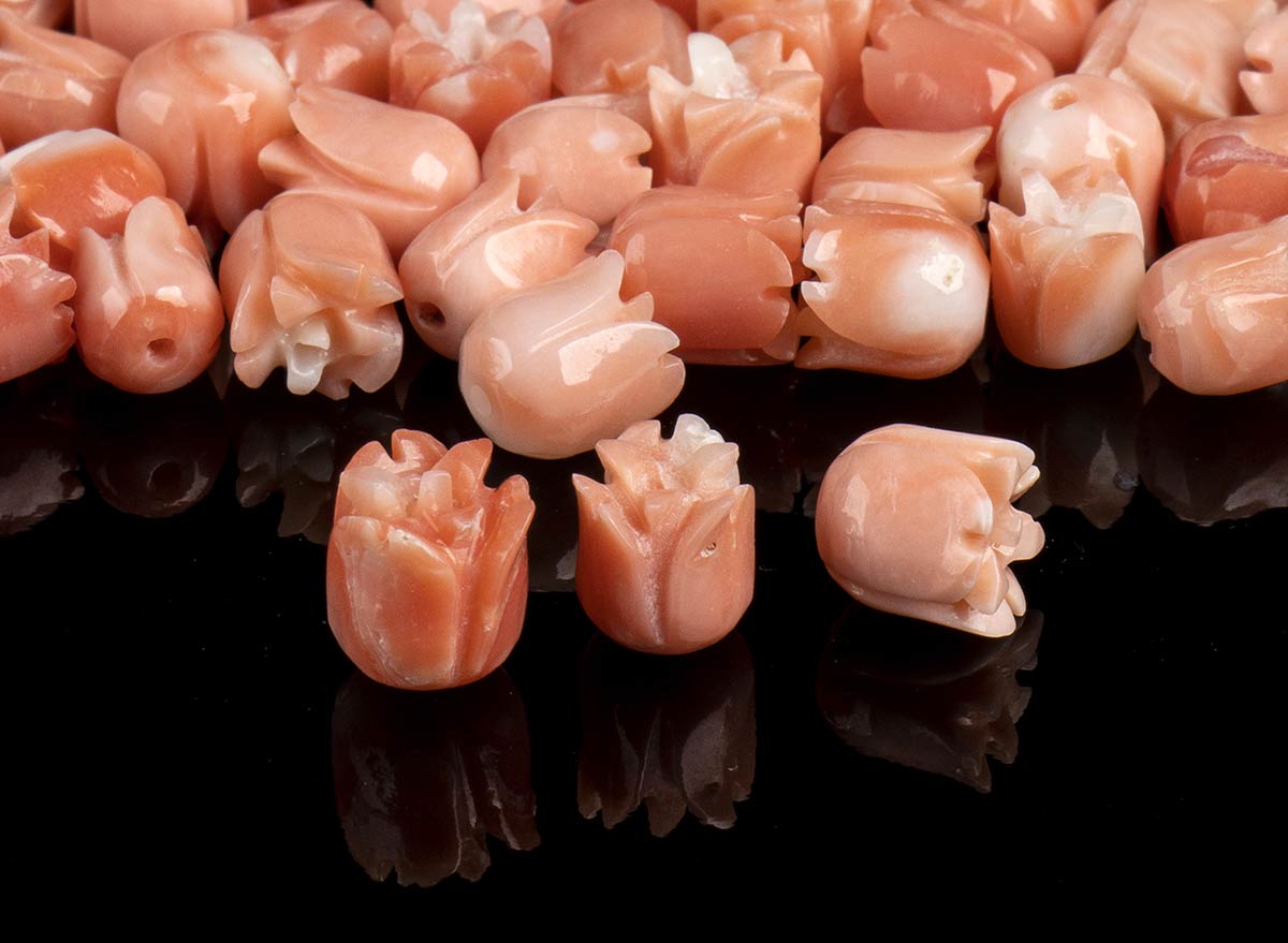 Piccoli tiulipani scolpiti in corallo cerasuolo