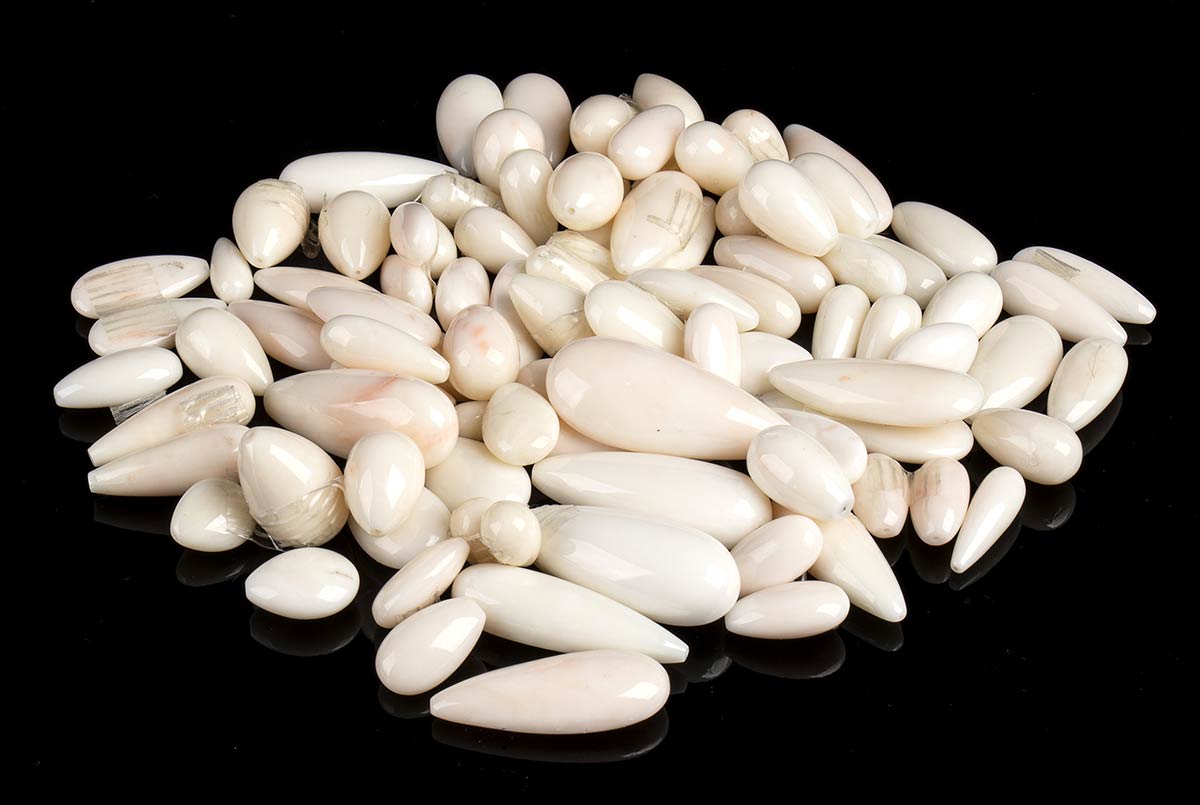 (corallium secundum). Dimensioni da 4 x 8,5 mm a 20 x 45 mm circa. Peso totale 467 gr circa. Stato di conservazione: ***** eccellente.