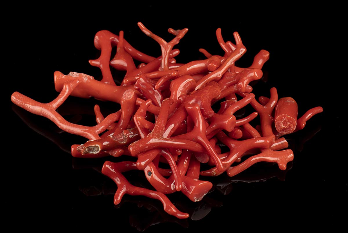 (corallium rubrum). Lunghezza rametti circa 20-60 mm. Peso totale 61 gr circa. Stato di conservazione: ***** eccellente.