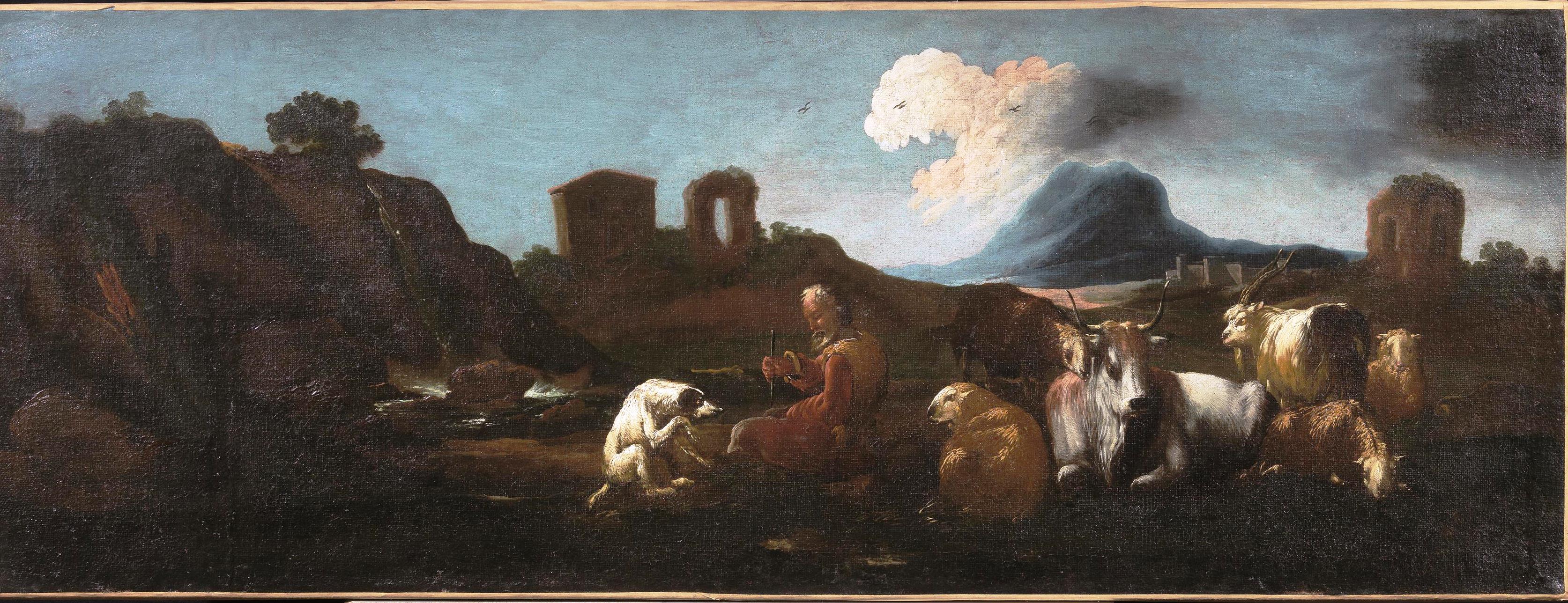 Cerchia di Domenico Brandi detto Micco, secc. XVII-XVIIIPASTORE IN RIPOSO CON...