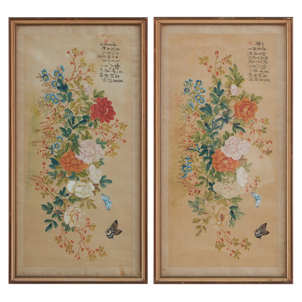 COPPIA TECNICHE MISTE su tela "Composizione floreale".