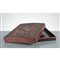 SCATOLA ORIENTALE in legno e lacca rossa con elemento ligneo scolpito a bassorilievo raffigurante "Scena di vita orientale".
