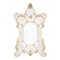 Grande specchiera realizzata con elementi in vetro di Murano nei toni del bianco e del paglierino ed elementi floreali in oro, specchio in parte inciso a motivo floreale.