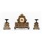 TRITTICO Boulle composto da orologio e due alzate in legno ebanizzato con tarsie in tartaruga, rame e madreperla.