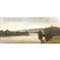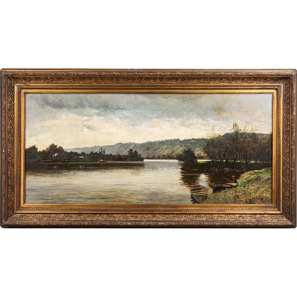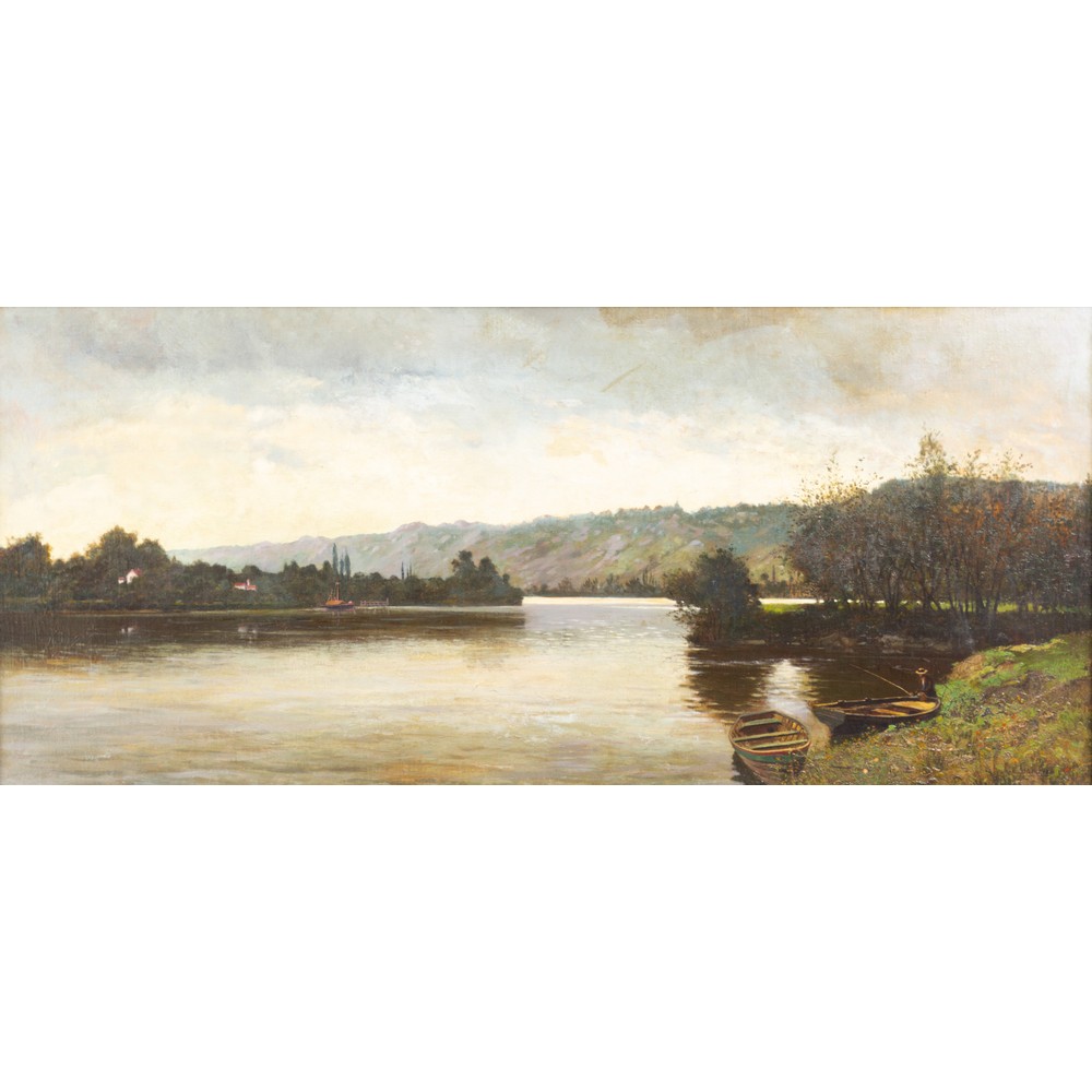EMILIO SANCHEZ PERRIER, Paesaggio lacustre con barche e...
