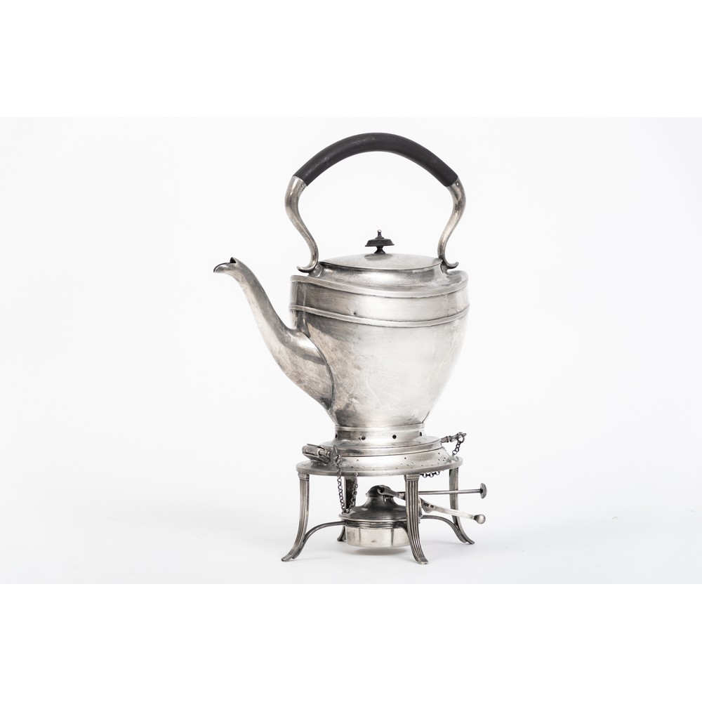 Samovar in argento con manico in legno ebanizzato (peso lordo g. 1.074)