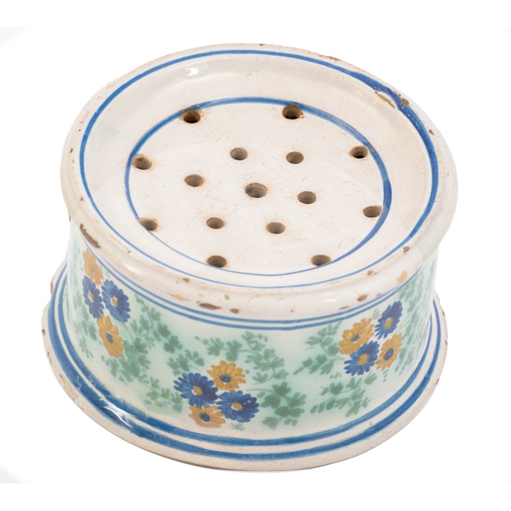 Fioriera in ceramica dipinta e smaltata a motivi floreali (usure).