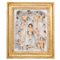 COMPOSIZIONE in ceroplastica "Bambinello con allegoria di angeli" entro teca in legno.