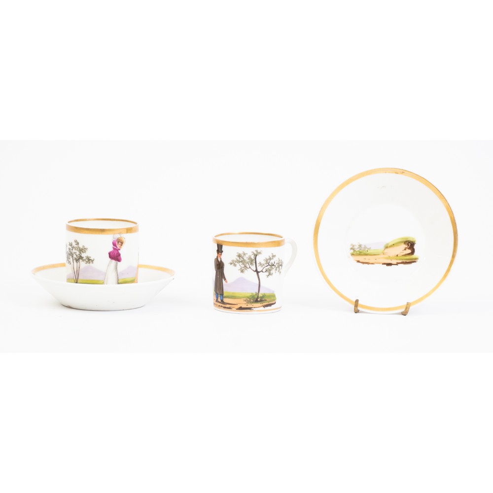 Coppia di tazzine Impero in porcellana dipinta con personaggi.