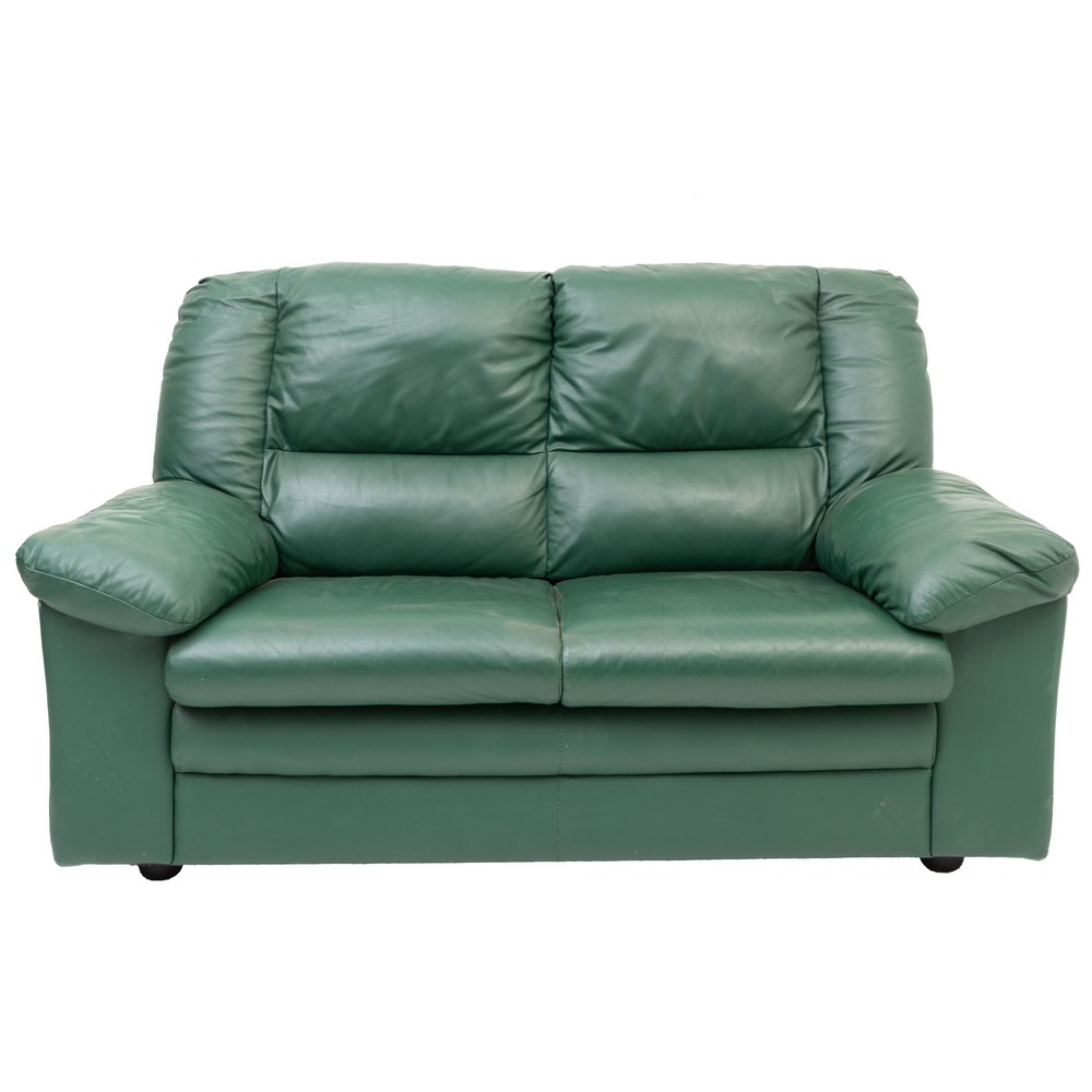 DIVANO a due posti in pelle verde.