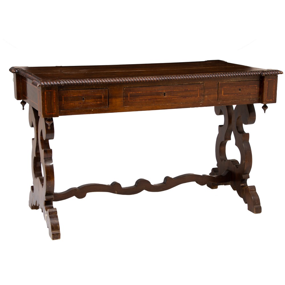 SCRITTOIO stile Luigi Filippo in legno di noce con perfili in bois de rose.