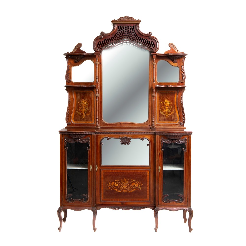 ETAGERE con vetrina in mogano e piuma di mogano.