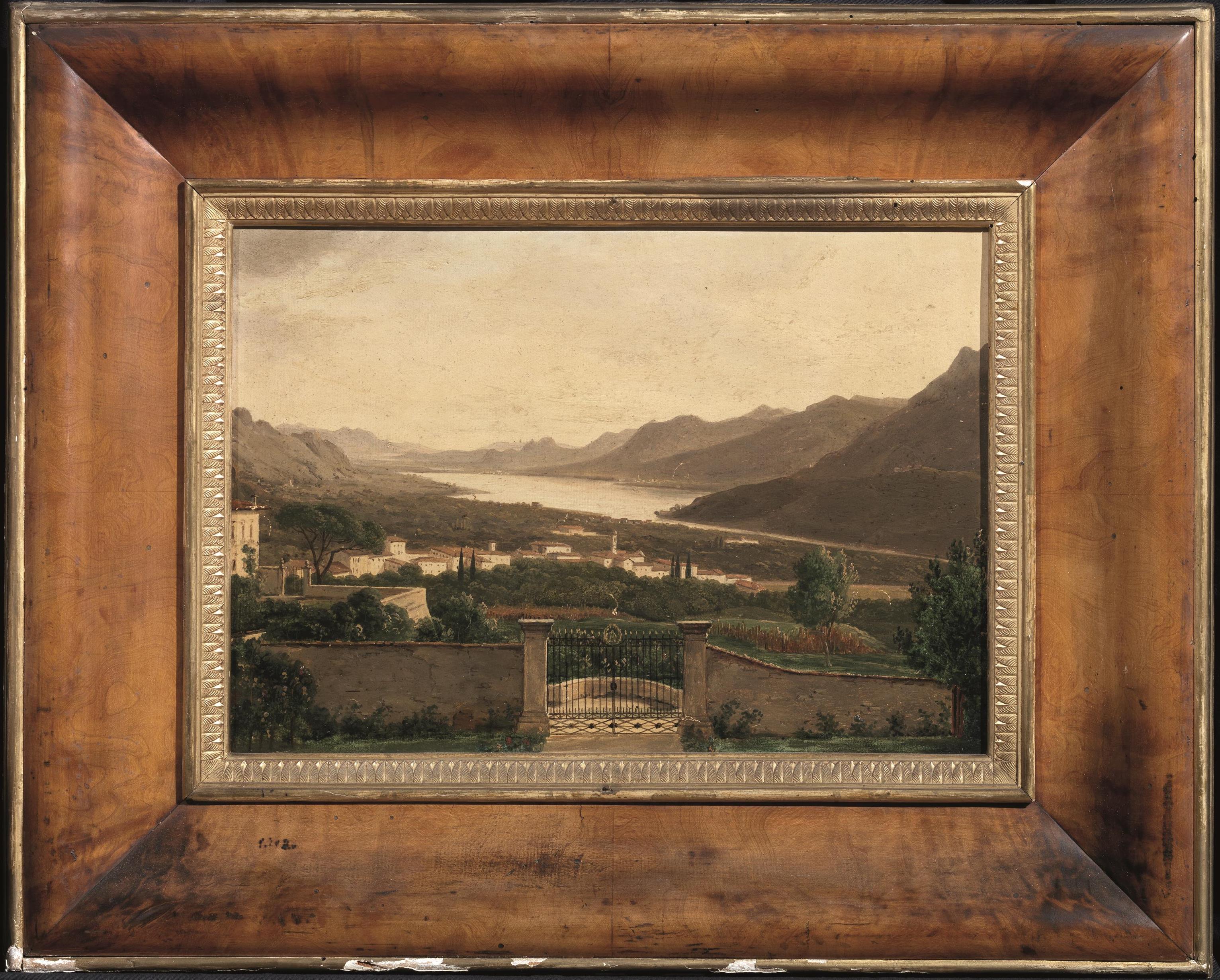 Scuola italiana, sec. XIXVEDUTA LACUSTRE DAL GIARDINO DI UNA VILLAolio su...