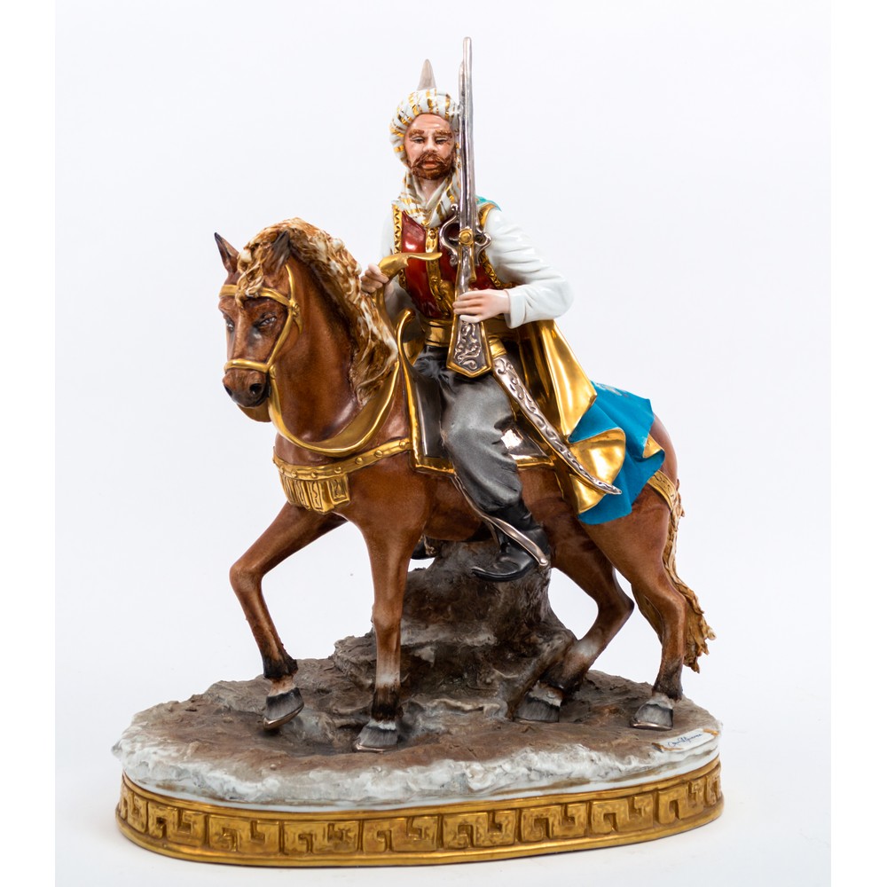 SCULTURA in porcellana raffigurante "Arabo a cavallo".