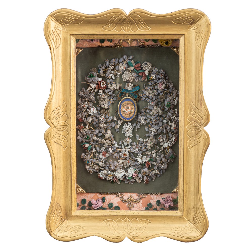 Lot 949 | TECA contenente reliquiario con composizione floreale