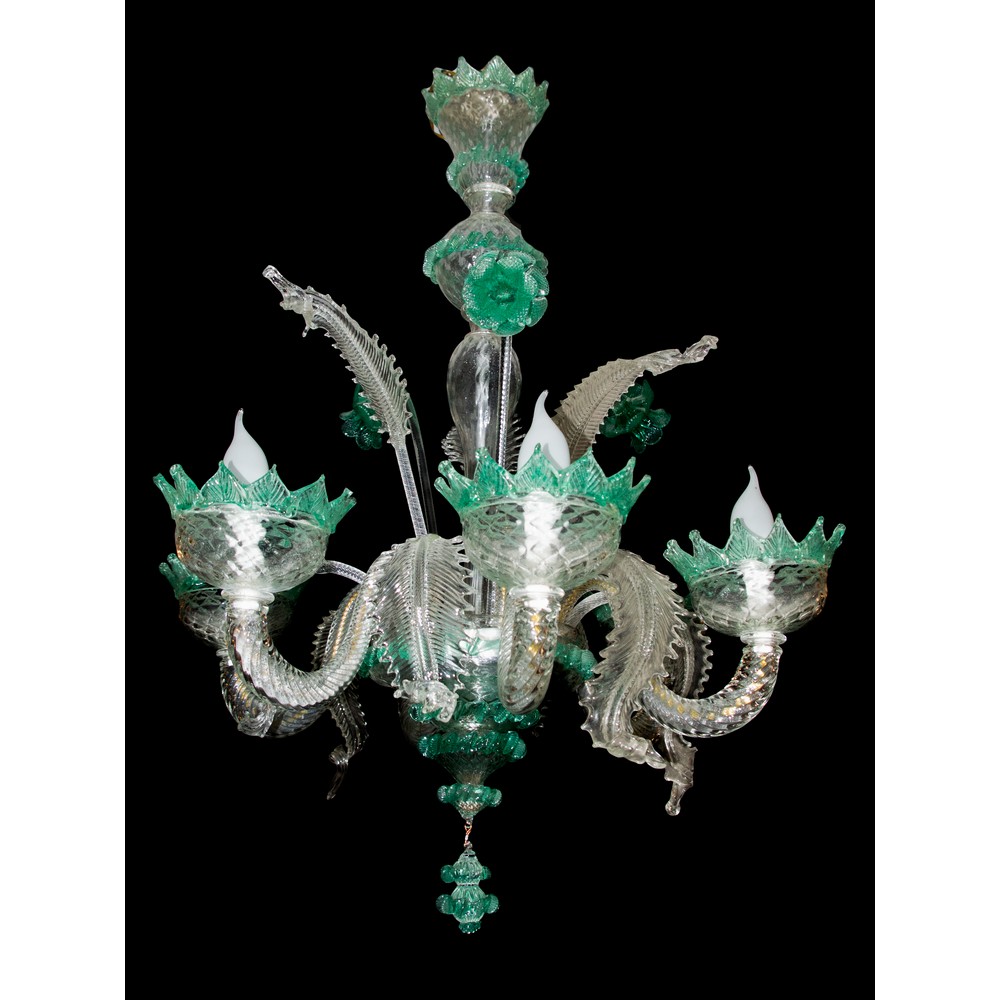 LAMPADARIO a sei luci in vetro di murano nei toni del bianco e verde.