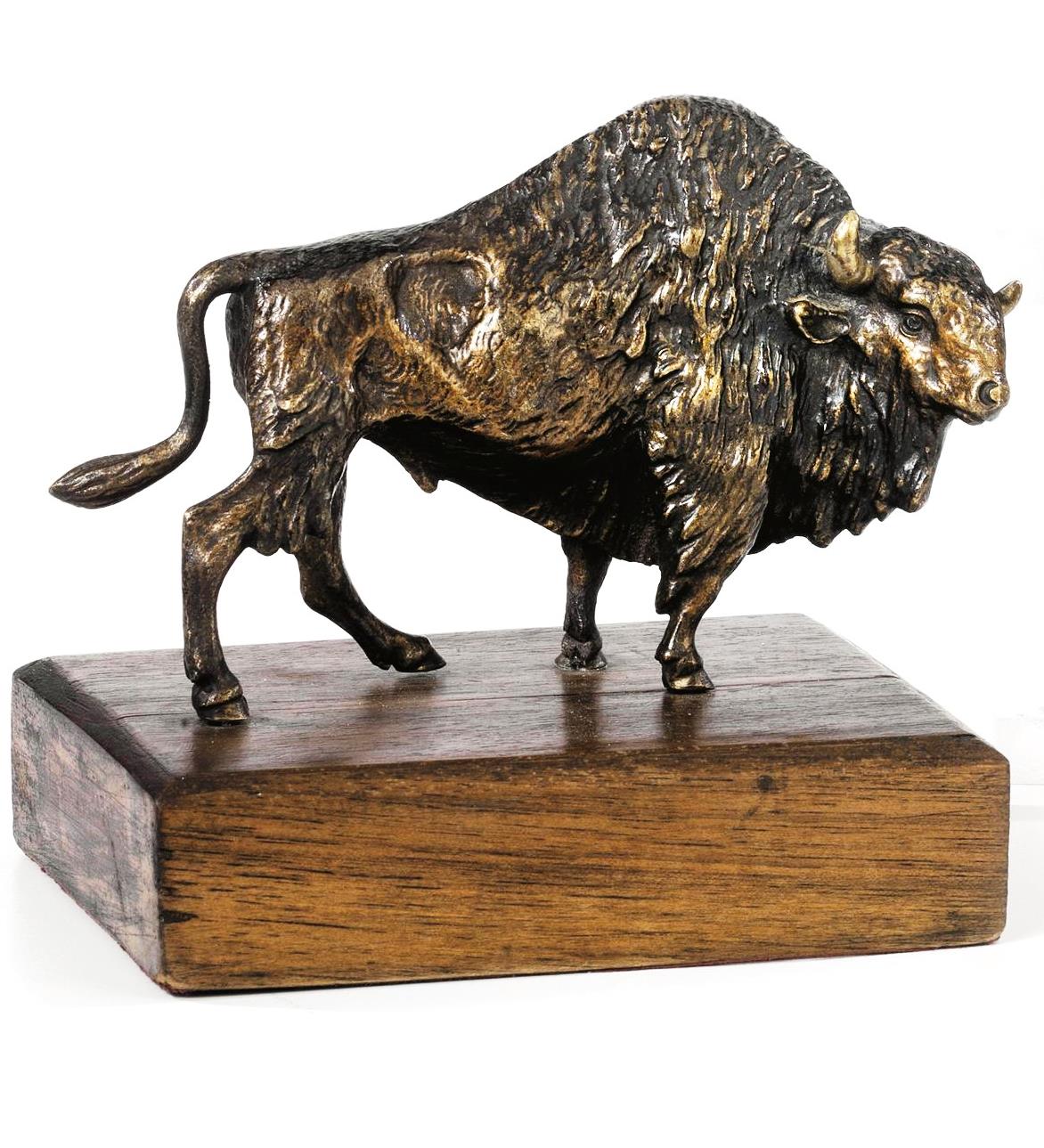 Scultura, Scuola Nord Europa, fine sec. XIX, in bronzo, modellata come un bisonte, cm 7x11, su base in legno