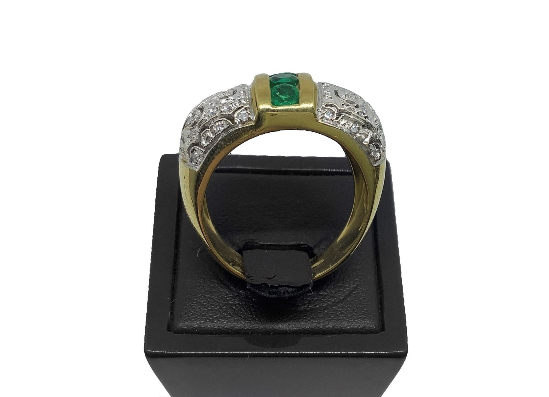 Anello in oro giallo con brillanti e smeraldi Brillanti ca 0.30 ct, smeraldi ca 0.50
