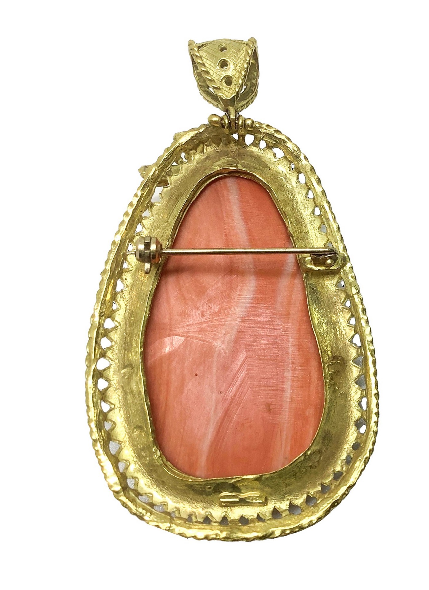 Importante cammeo in corallo con base in oro raffigurante Cristo