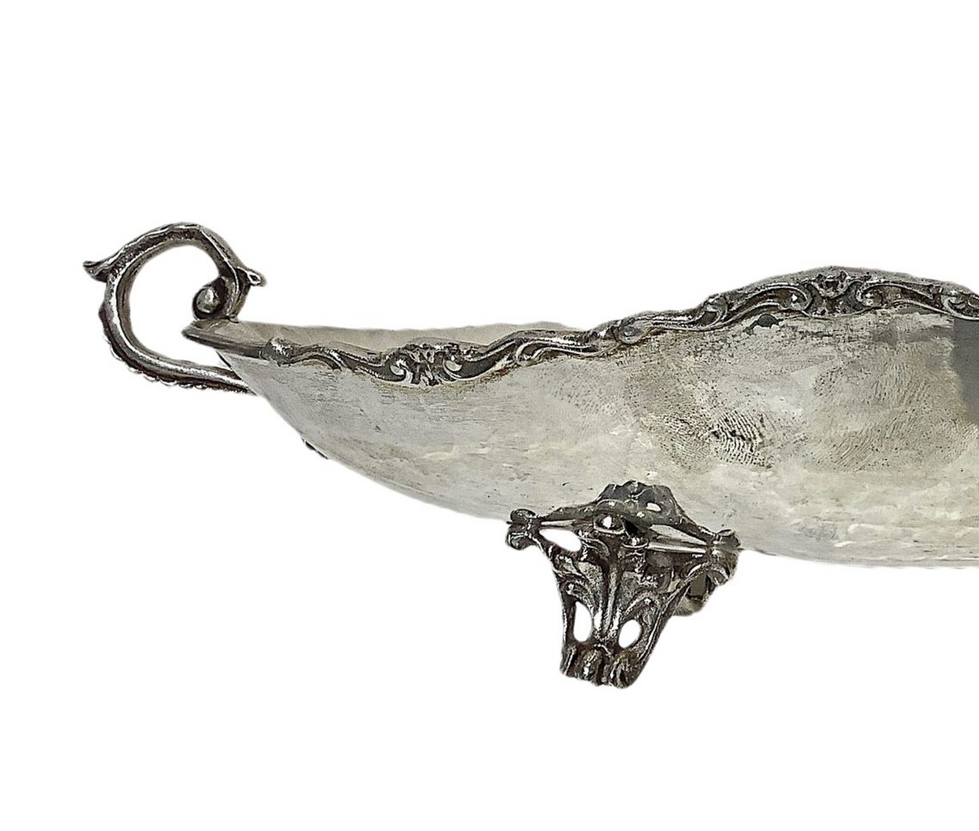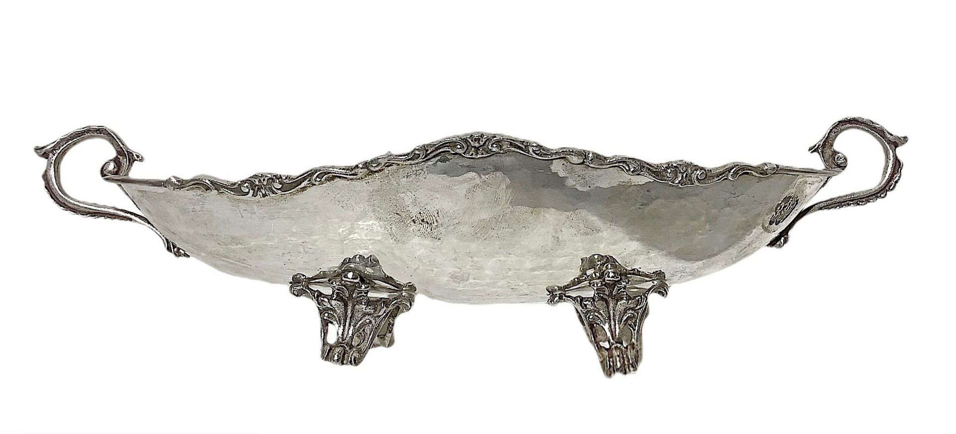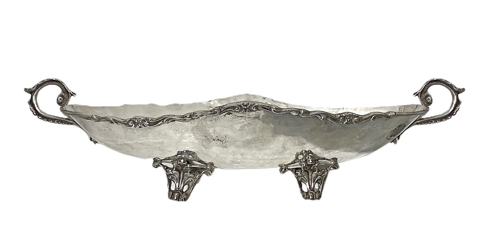 Ciatta centro tavola in argento 800. H cm 7, diametro cm 33. Gr.420