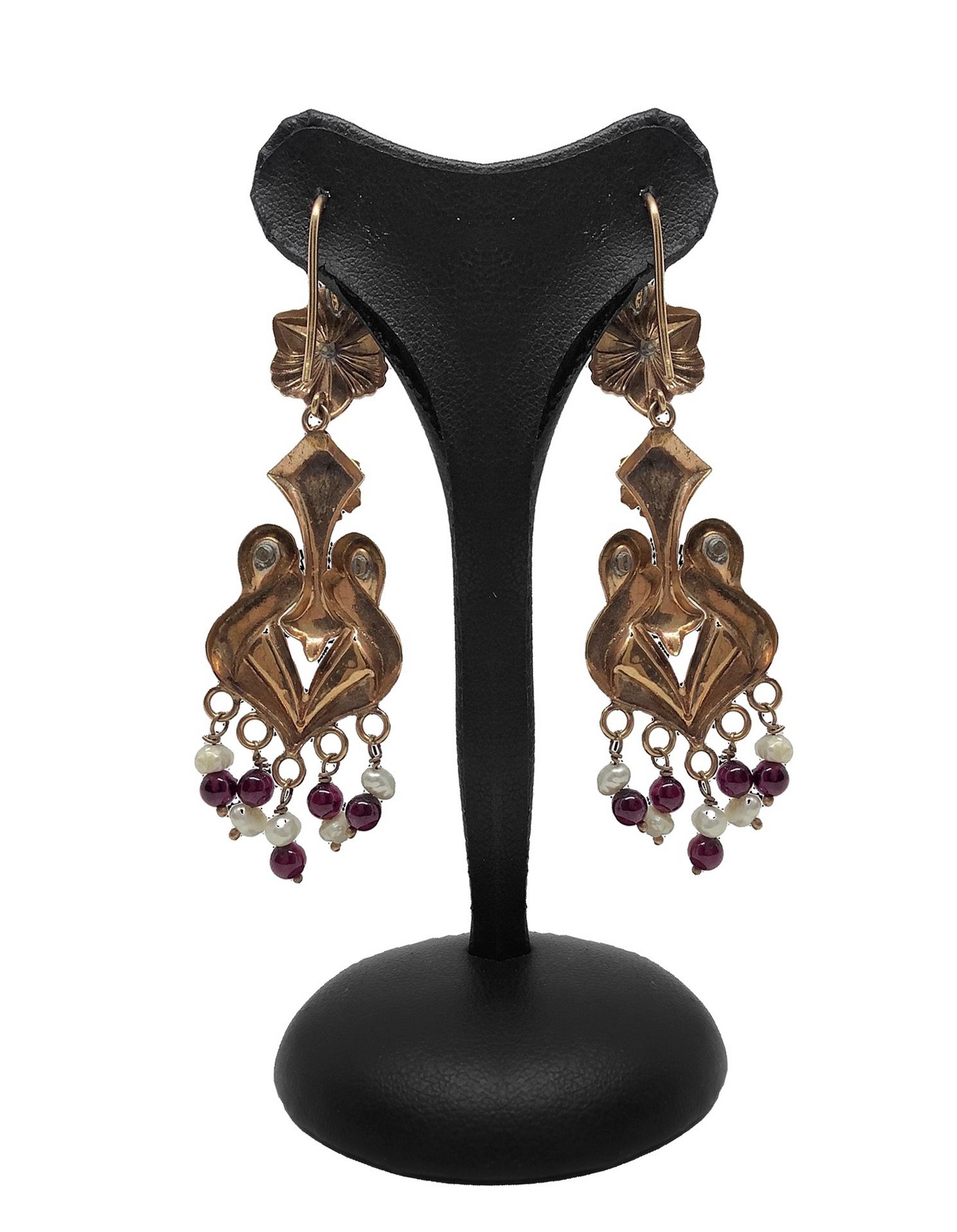 Lot 177 | Orecchini basso titolo borbonici con perline, granate e smalti