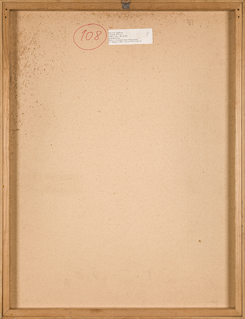 Cartiglio dell'esposizione 'Il sogno..' al retro del cartone protettivo