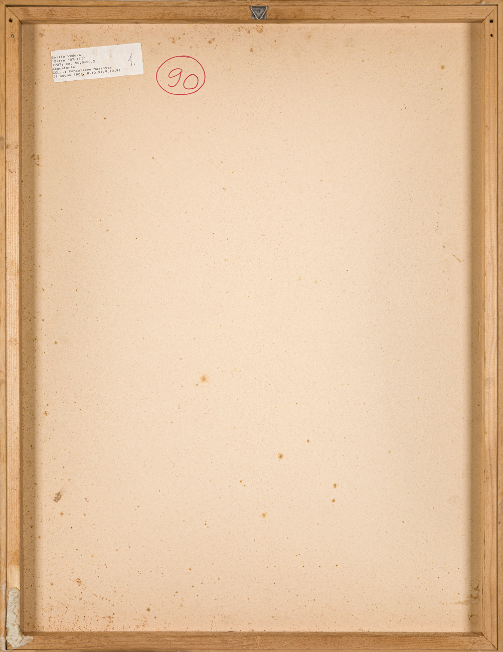Cartiglio dell'esposizione 'Il sogno..' al retro del cartone protettivo