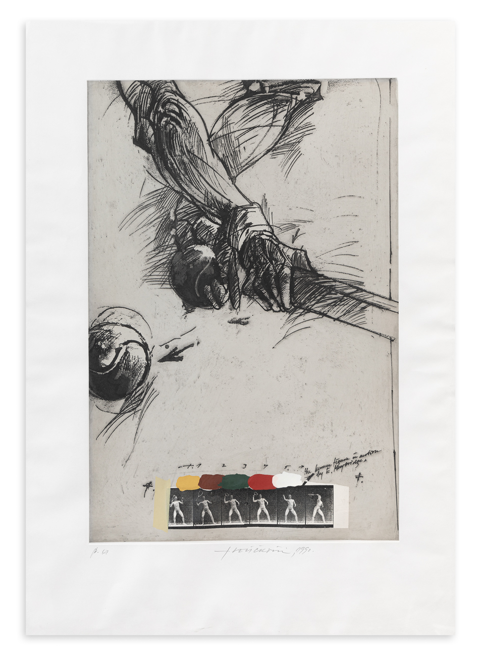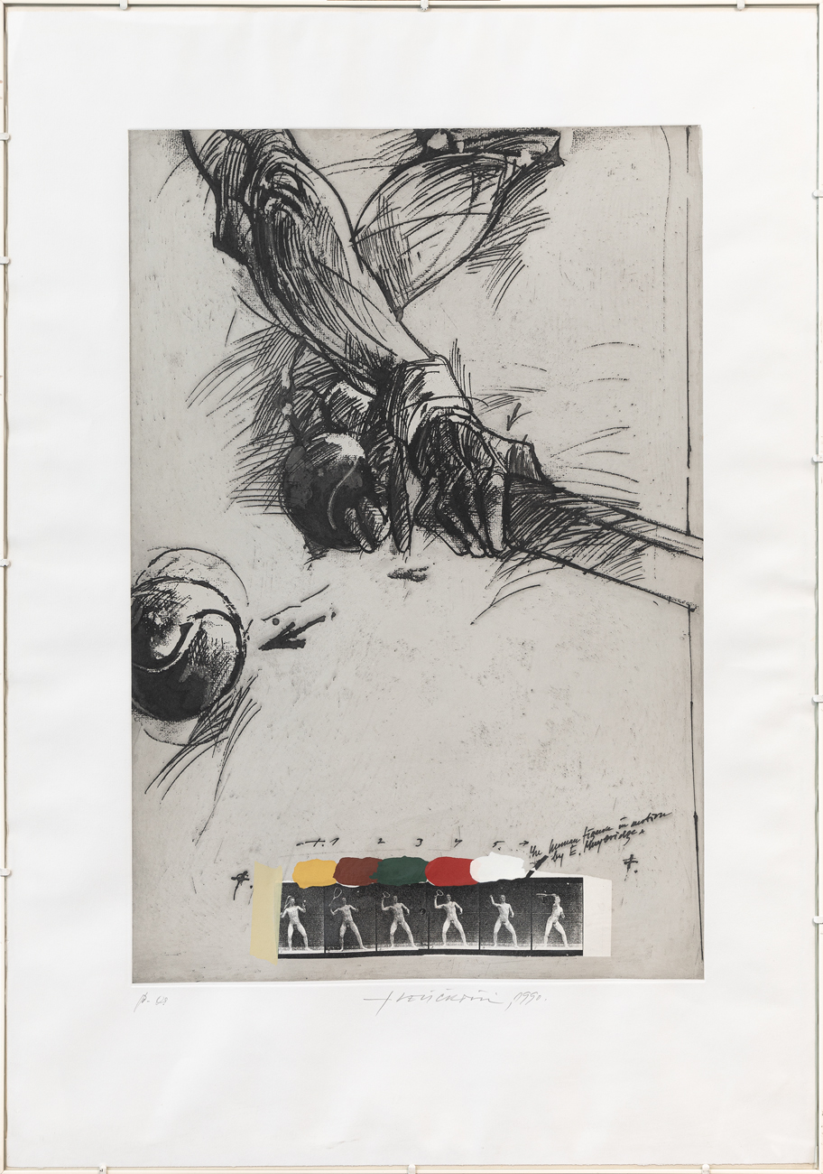 L'elemento in collage consiste in una fotocopia tratta dalle 'Sequenze di immagini' di Eadweard Muybridge