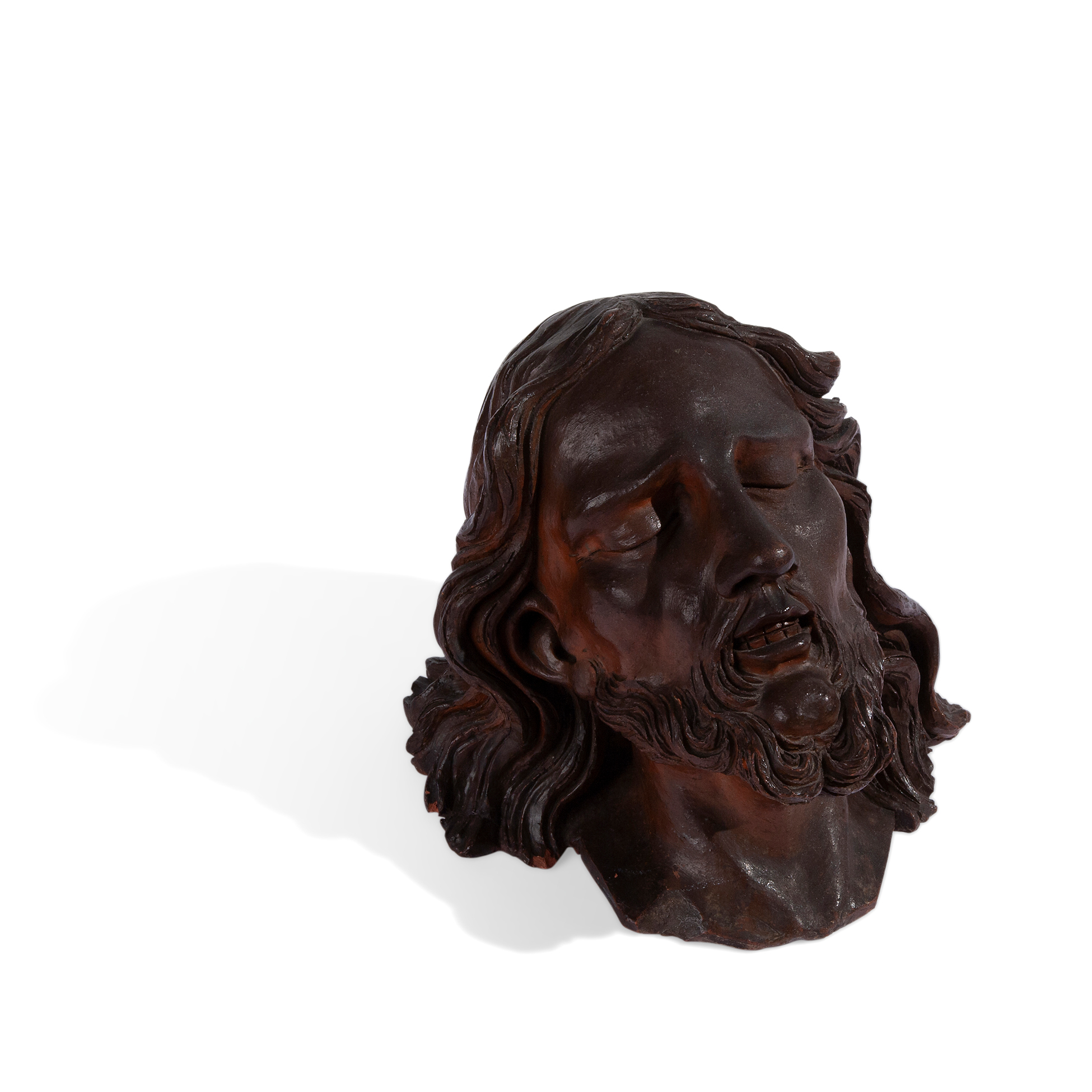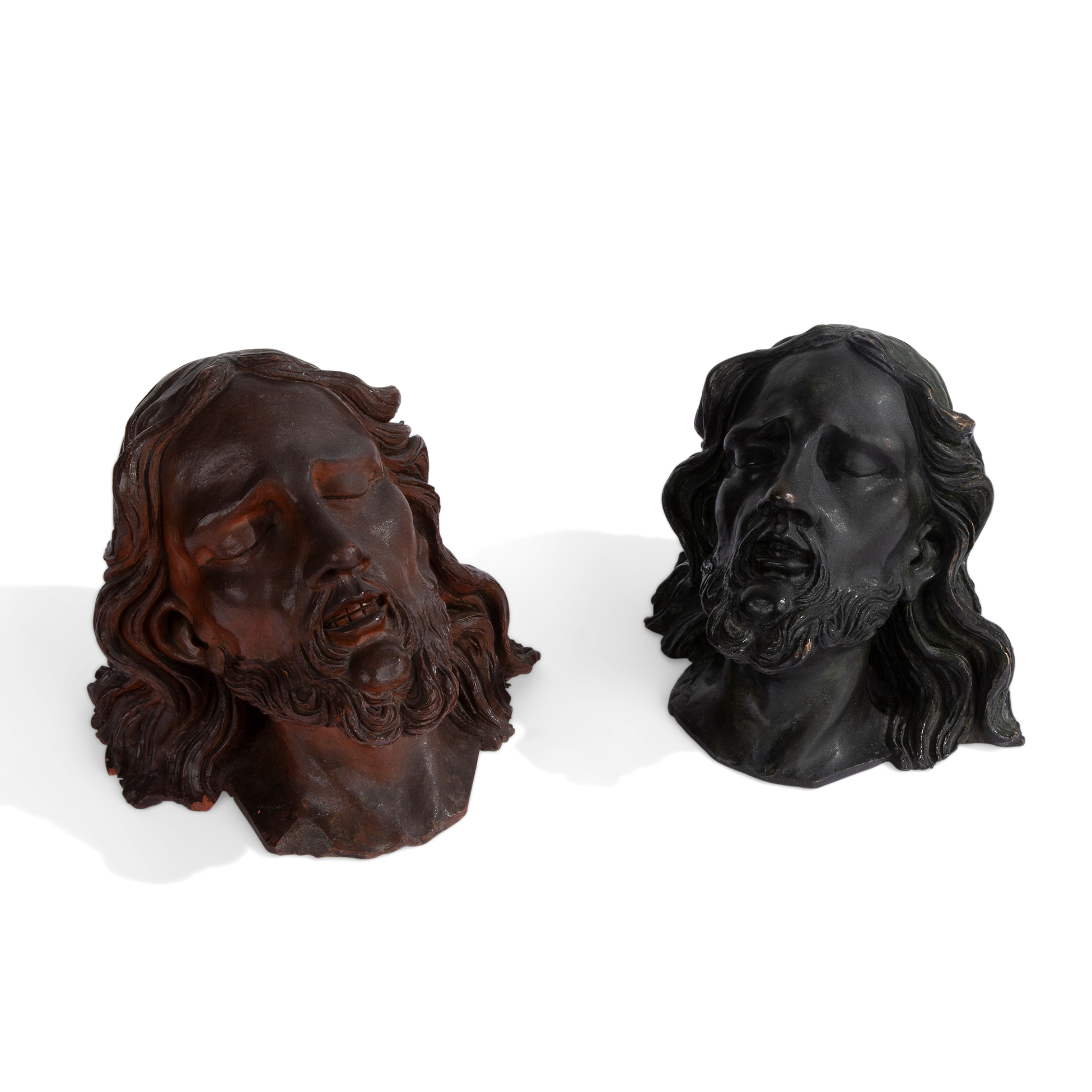 Due teste di Cristo, Italia XVI secolo Una manufatto è realizzato in terracotta, il secondo è di dimensioni leggermente più piccole ed è realizzato in bronzo a patina scura. La testa in terracotta è stata sottoposta ad un esame di termoluminescenza, che