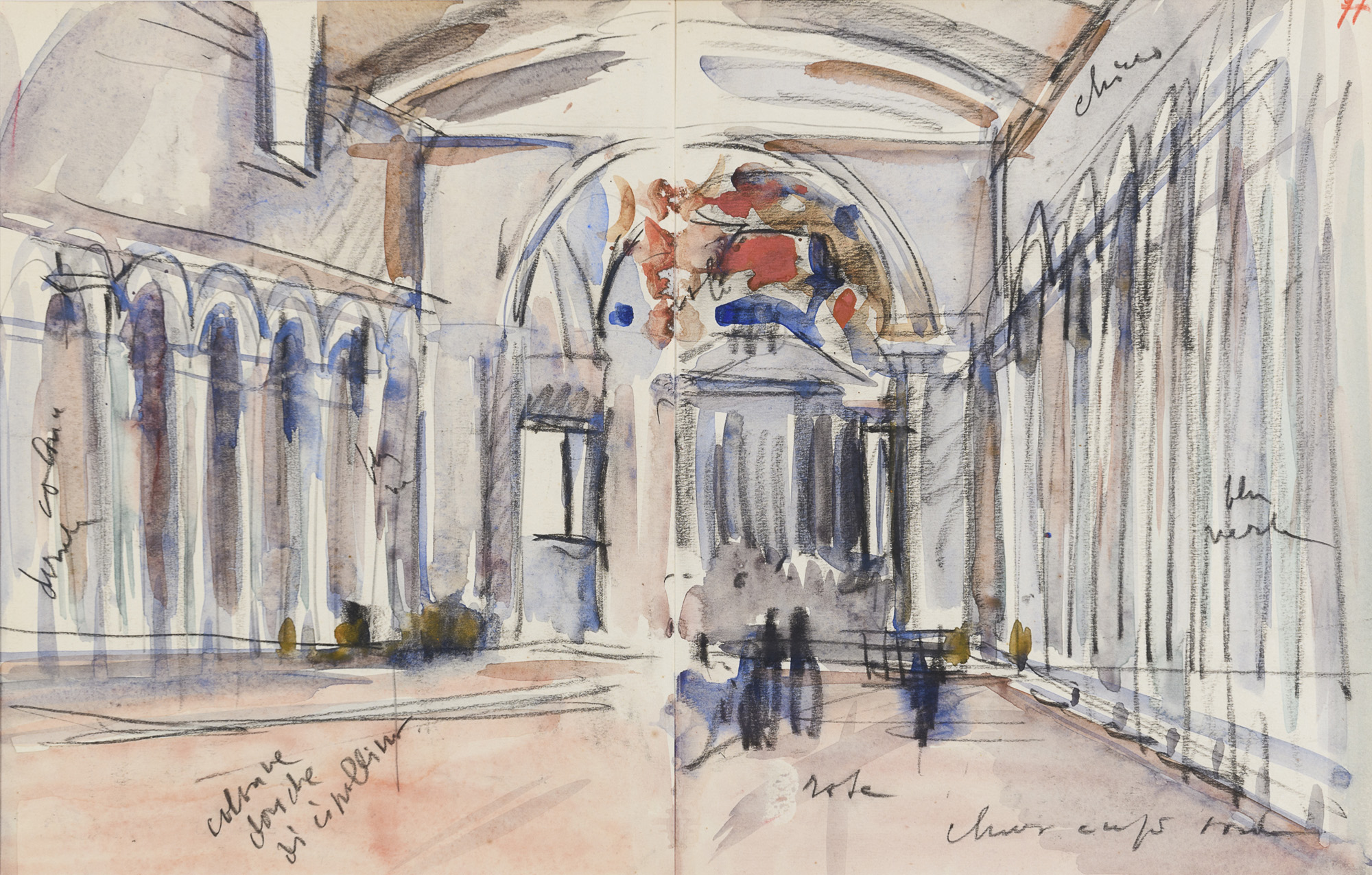 Matita, carboncino e acquerello su carta, cm. 31 x 47,5