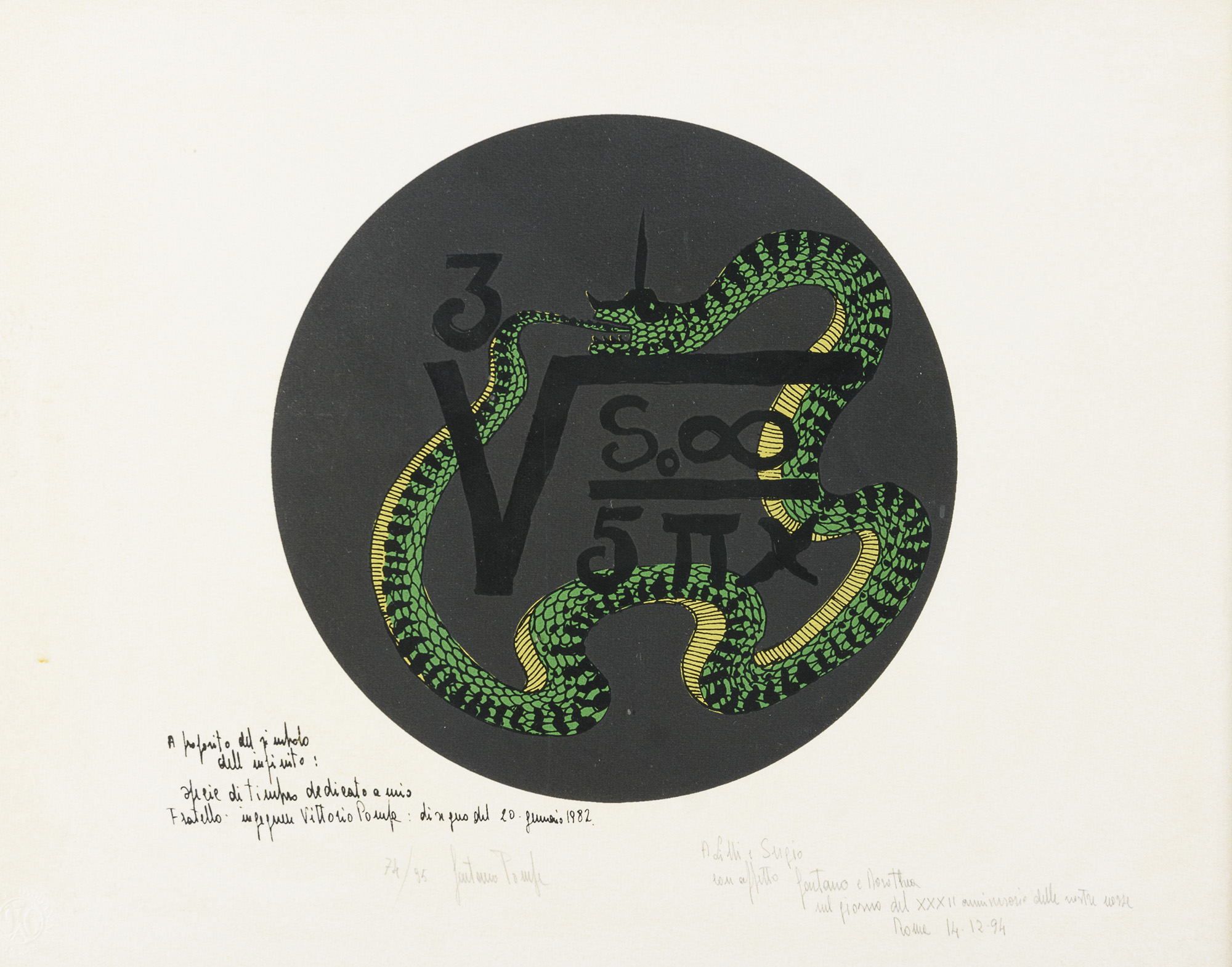 Firma, data, titolo e iscrizione 'specie di timbro dedicato a mio fratello ingegnere Vittorio Pompa: disegno del 20 gennaio 1982', in basso a sinistra
