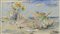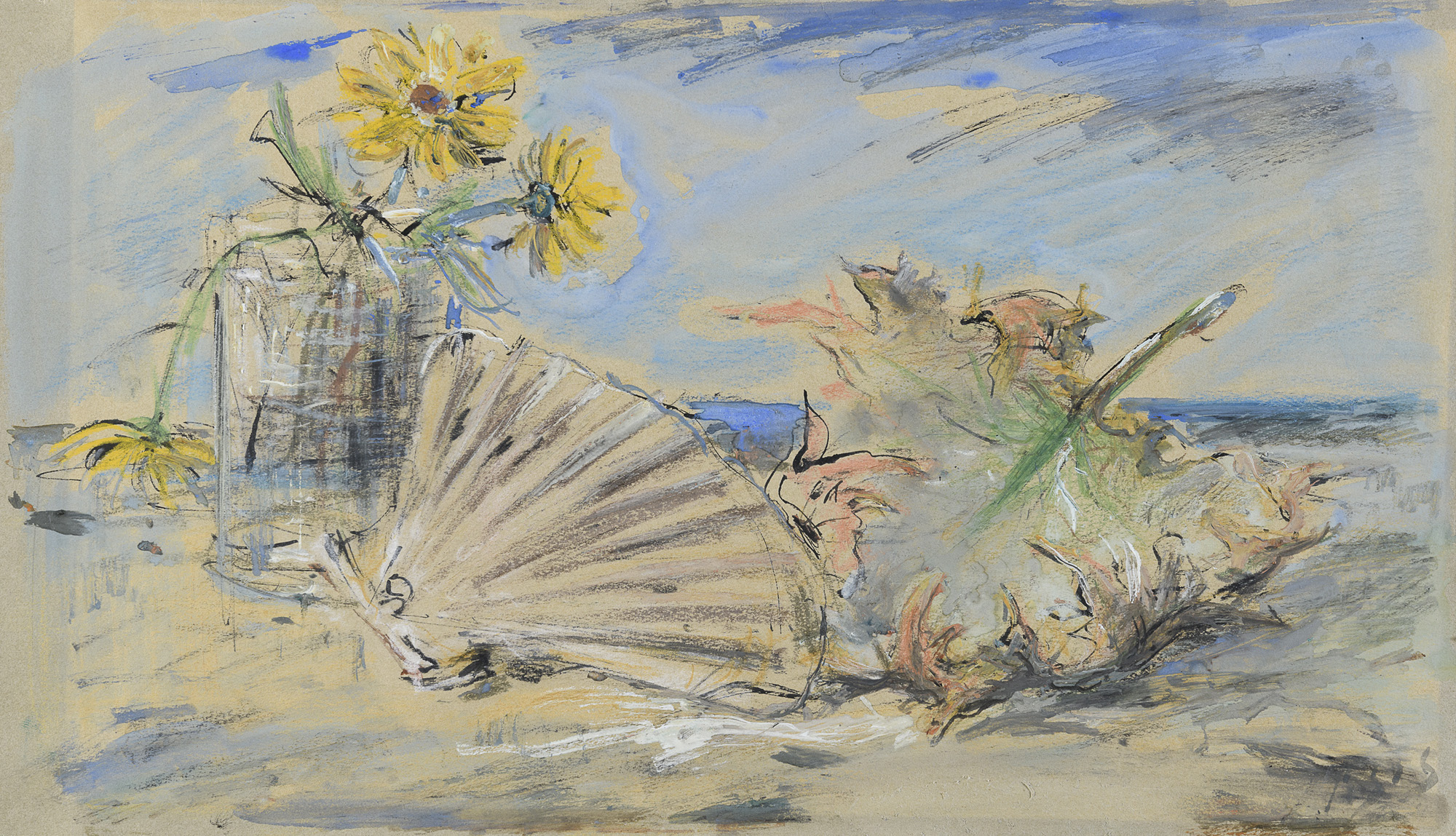 Marina con conchiglia, foglia e vaso di fiori, anni '40