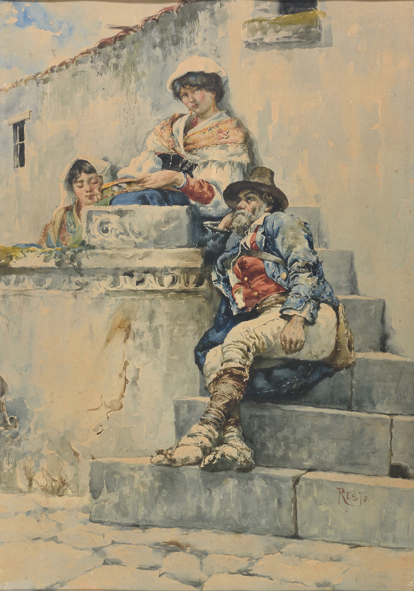ACQUERELLO POPOLANI A RIPOSO DI RAFFAELLO RESIO
