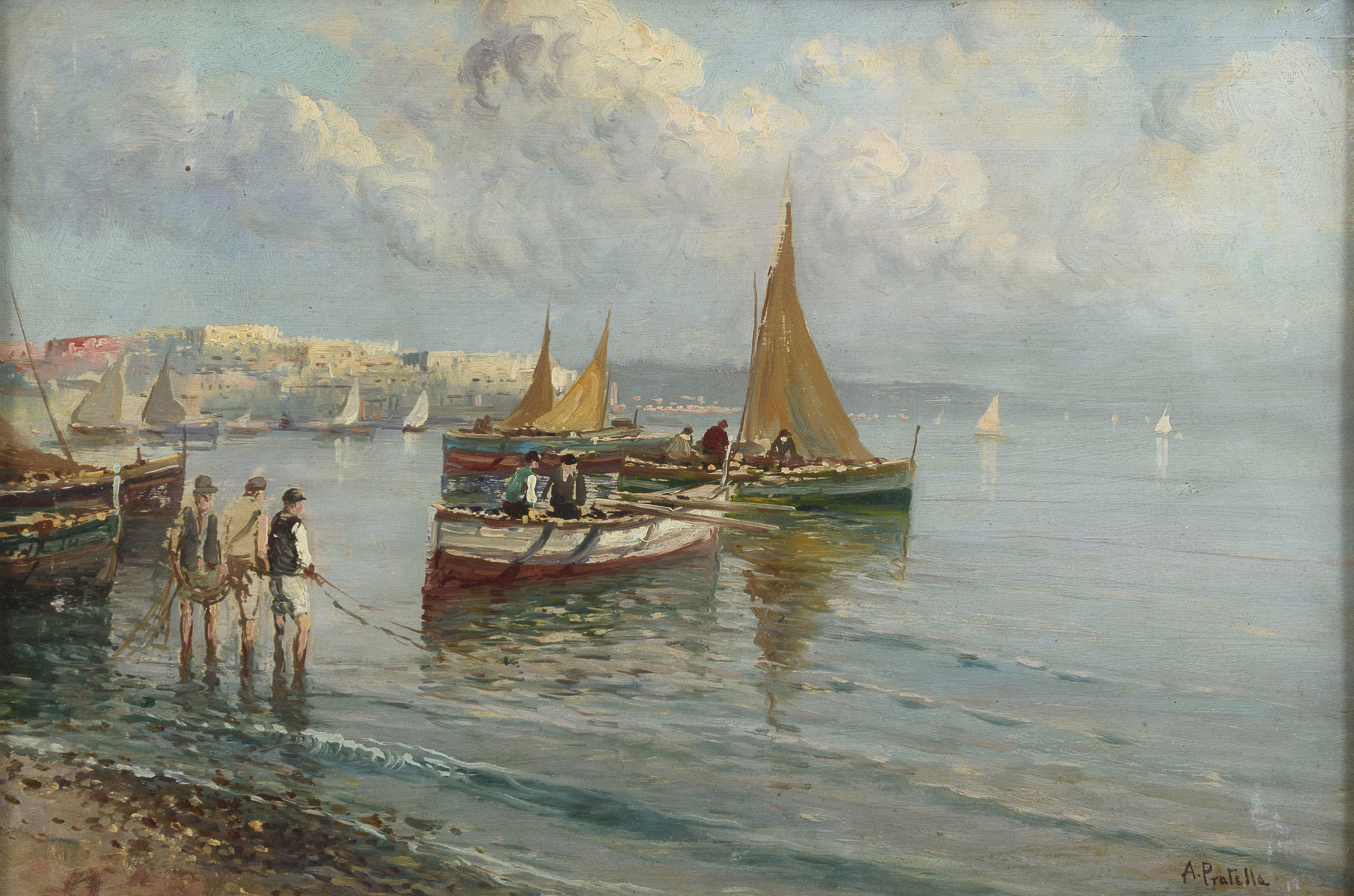 DIPINTO BARCHE DI PESCATORI DI PITTORE NAPOLETANO