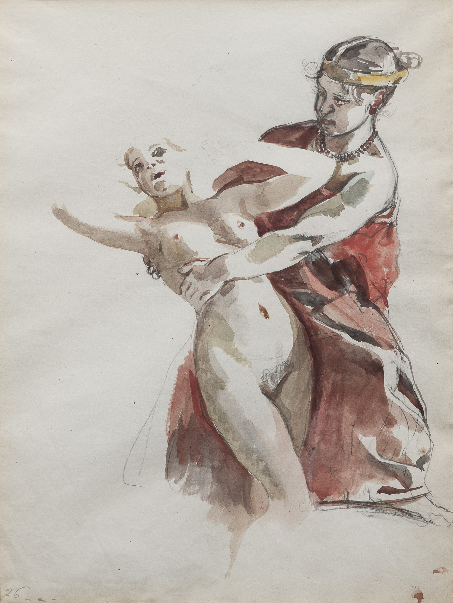 ACQUERELLO DONNE DI PITTORE ITALIANO