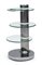 in metallo cromato con ripiani in vetro. Montante a colonnina con partiture in plastica, base a disco.