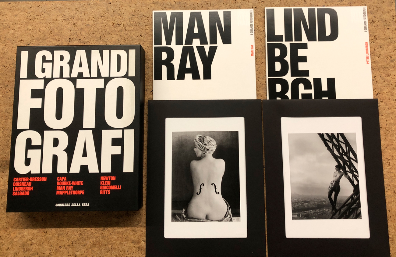 Cofanetto contenente 12 fascicoli illustrati e 12 riproduzioni litografiche di opere dei seguenti fotografi: Horst P. Horst, Herb Ritts, Mario Giacomelli, William Klein, Helmut Newton, Margaret Bourke-White, Robert Capa, Sebastiao Salgado, Peter Lindbergh, Robert Doisneau, Henry Cartier-Bresson e Man Ray
