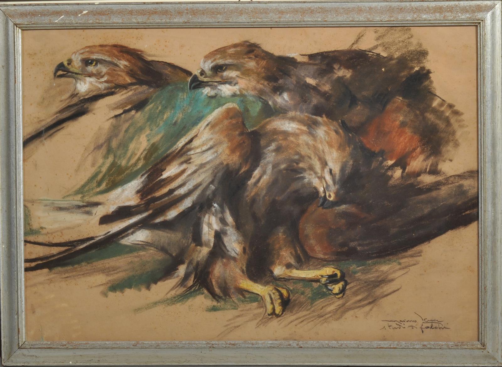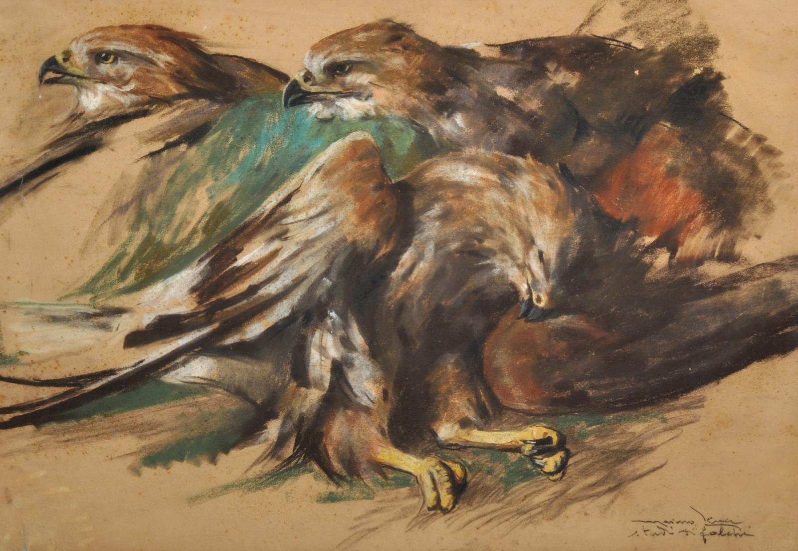 firmato e iscritto in basso a destra: Marino Lenci Studi di falchi