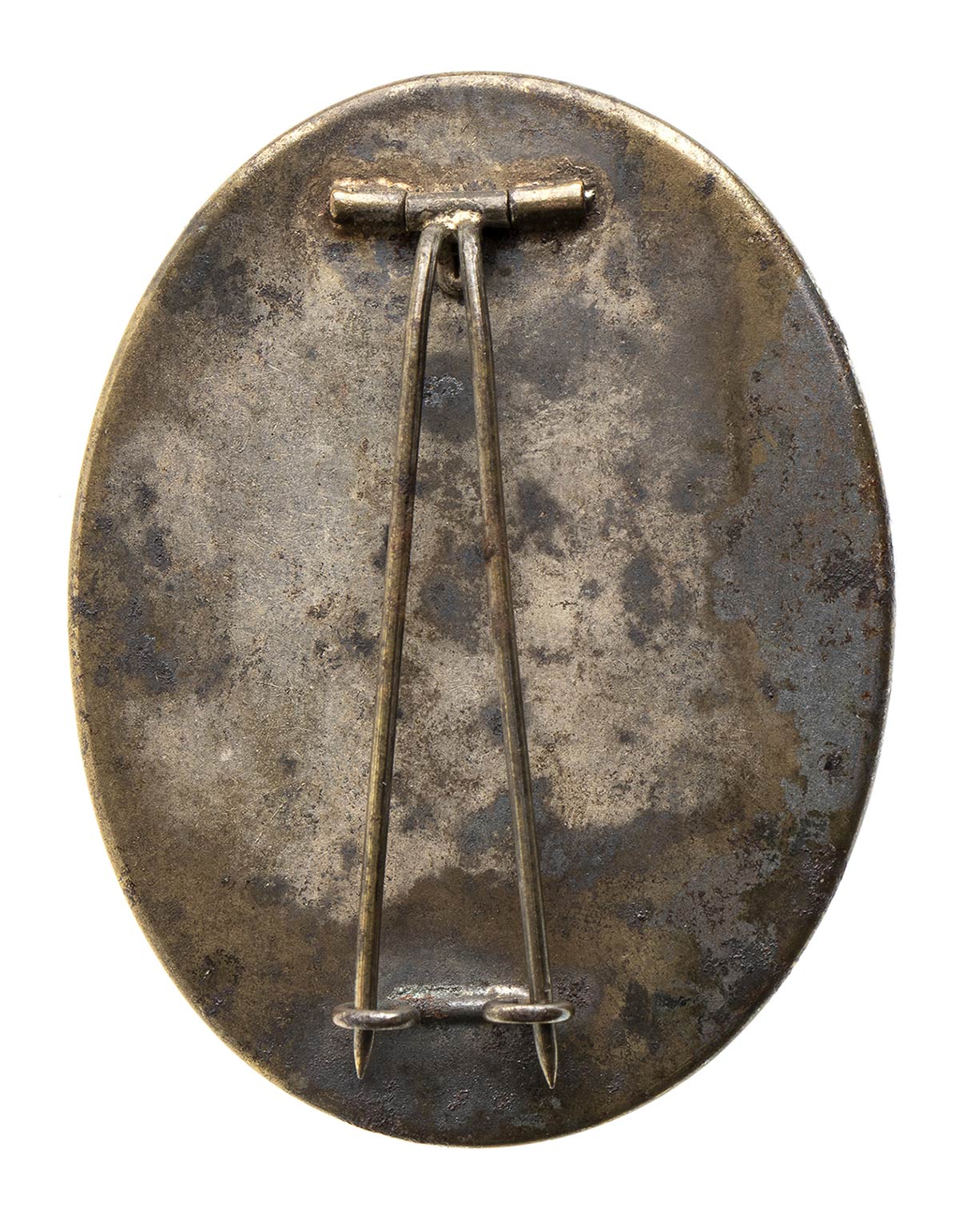 PLACCHETTA IN VETRO DIPINTO MONTATA IN CORNICE D'ARGENTO CON DOPPIO SPILLONE POSTERIORE