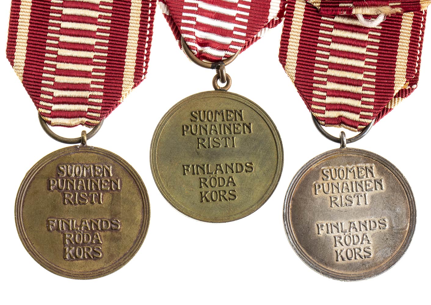 LOTTO DI UNA MEDAGLIA IN ARGENTO E DUE DI BRONZO, NASTRI ORIGINALI