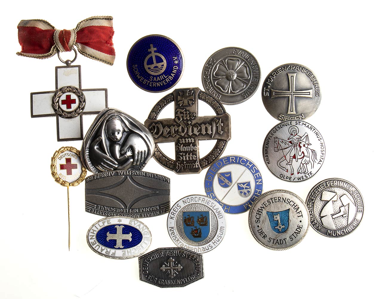 LOTTO COMPOSTO DA QUINDICI TRA DISTINTIVI E MEDAGLIE DELLA CROCE ROSSA ED ORGANIZZAZIONI UMANITARIE TEDESCHE, COMPRESA UNA CROCE AL MERITO DELLA DRK PERIODO WEIMAR