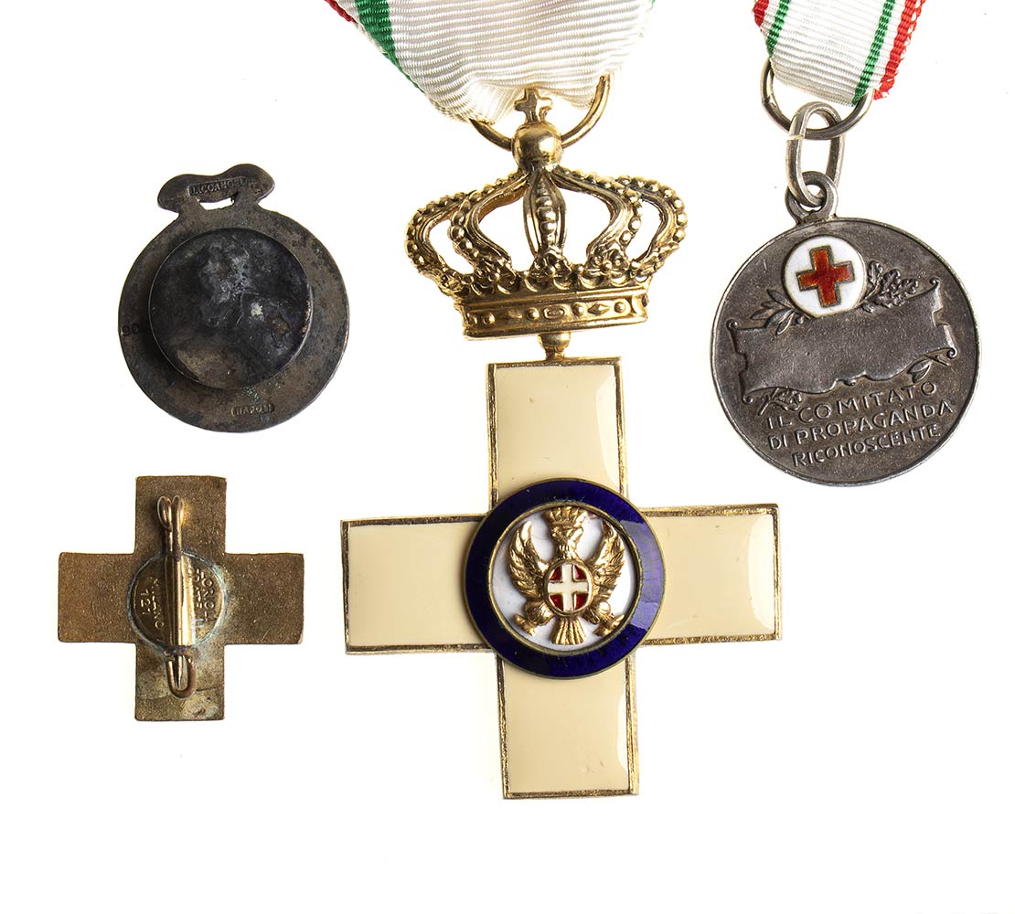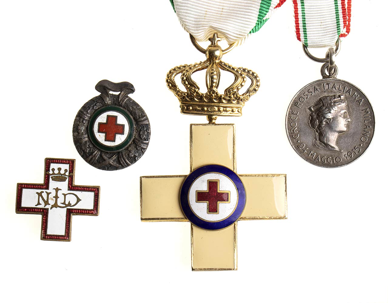 CROCE AL MERITO CRI, MEDAGLIA DEL COMITATO DI PROPAGANDA DELLA CRI E DUE DISTINTIVI