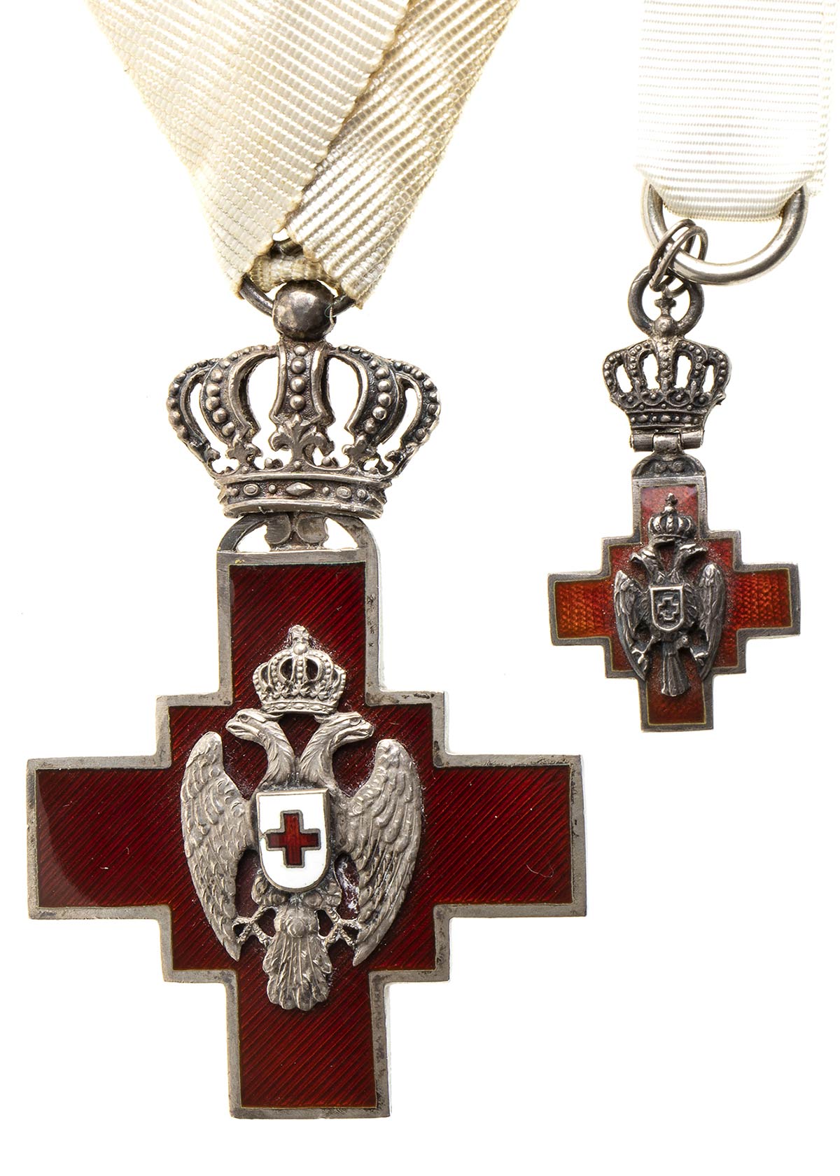 SERBIA - CROCE AL MERITO DELLA CROCE ROSSA E MINIATURA