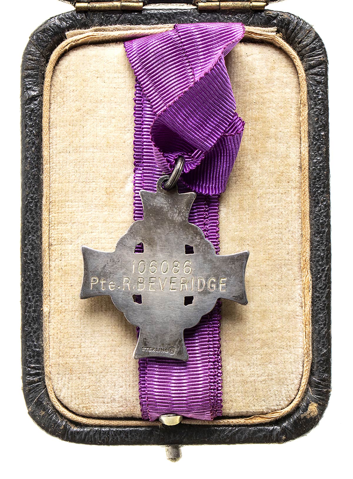 MEMORIAL CROSS IN SCATOLA CON NASTRO ORIGINALE, CONCESSA A 106086 P.TE R. BEVERIDGE, MARCATA , IN ASTUCCIO ORIGINALE