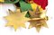 INSEGNA DI GRAN CROCE, PLACCA CON AL VERSO MARCHI DEL FABBRICANTE SULLO SPILLONE CENTRALE, PENDENTE IN BRONZO DORATO, BUONA FATTURA