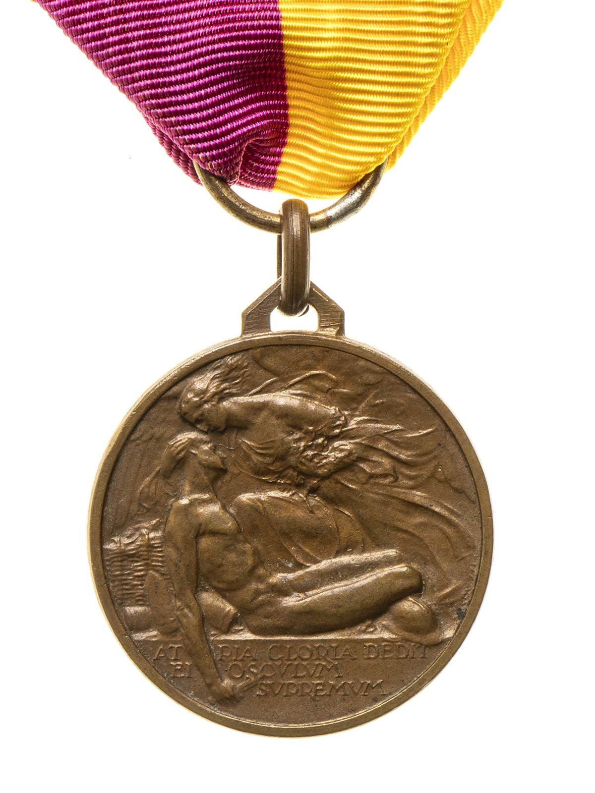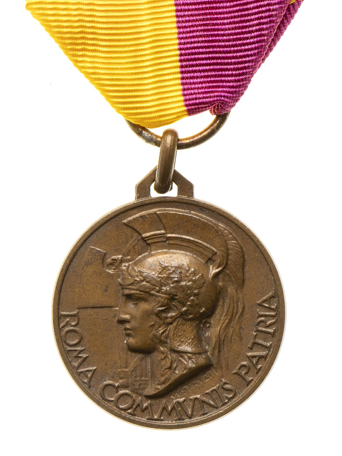 MEDAGLIA DEL GOVERNATORATO DI ROMA, TESTA ELMATA SU FASCIO LITTORIO, AL VERSO ANGELO CHE SOCCORRE UN FERITO, NASTRO CORRETTO MA NON ORIGINALE