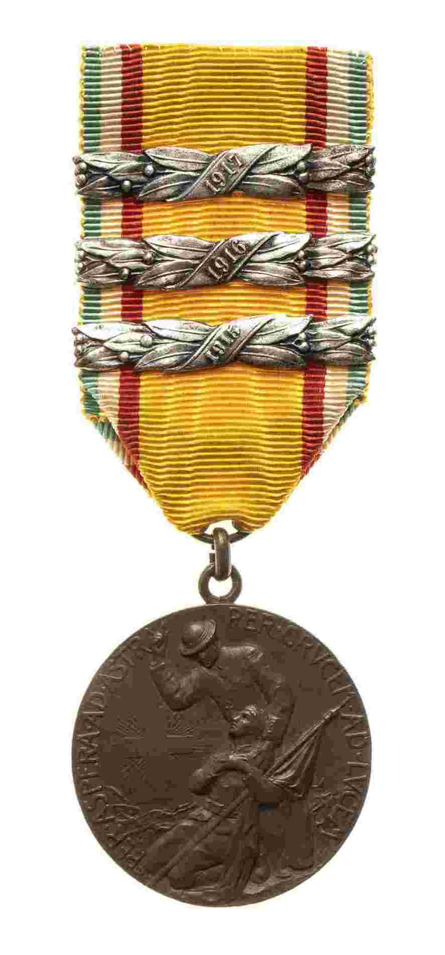 MEDAGLIA IN BRONZO PER CAPPELLANO MILITARE CON BARRETTE TRE ANNI DI GUERRA